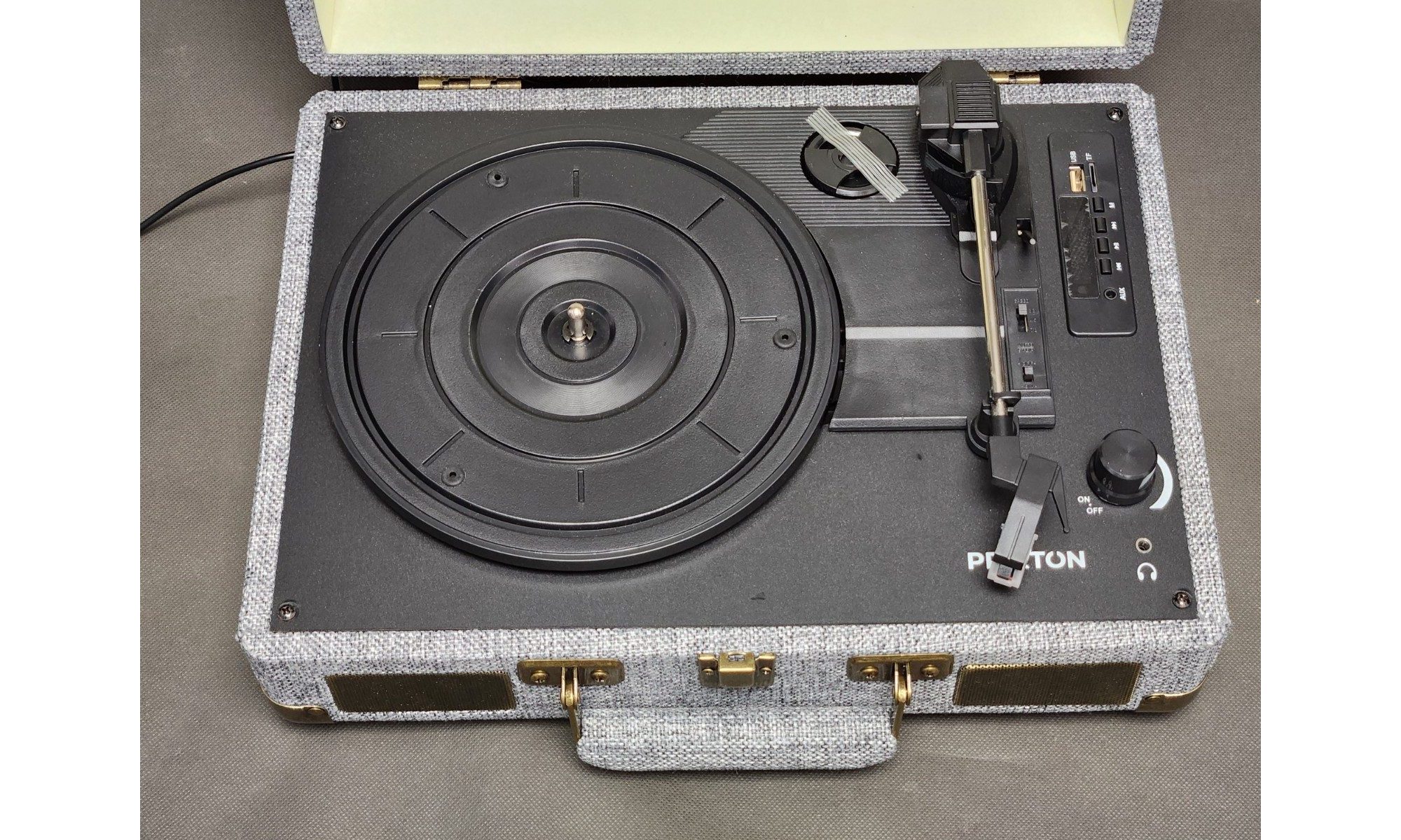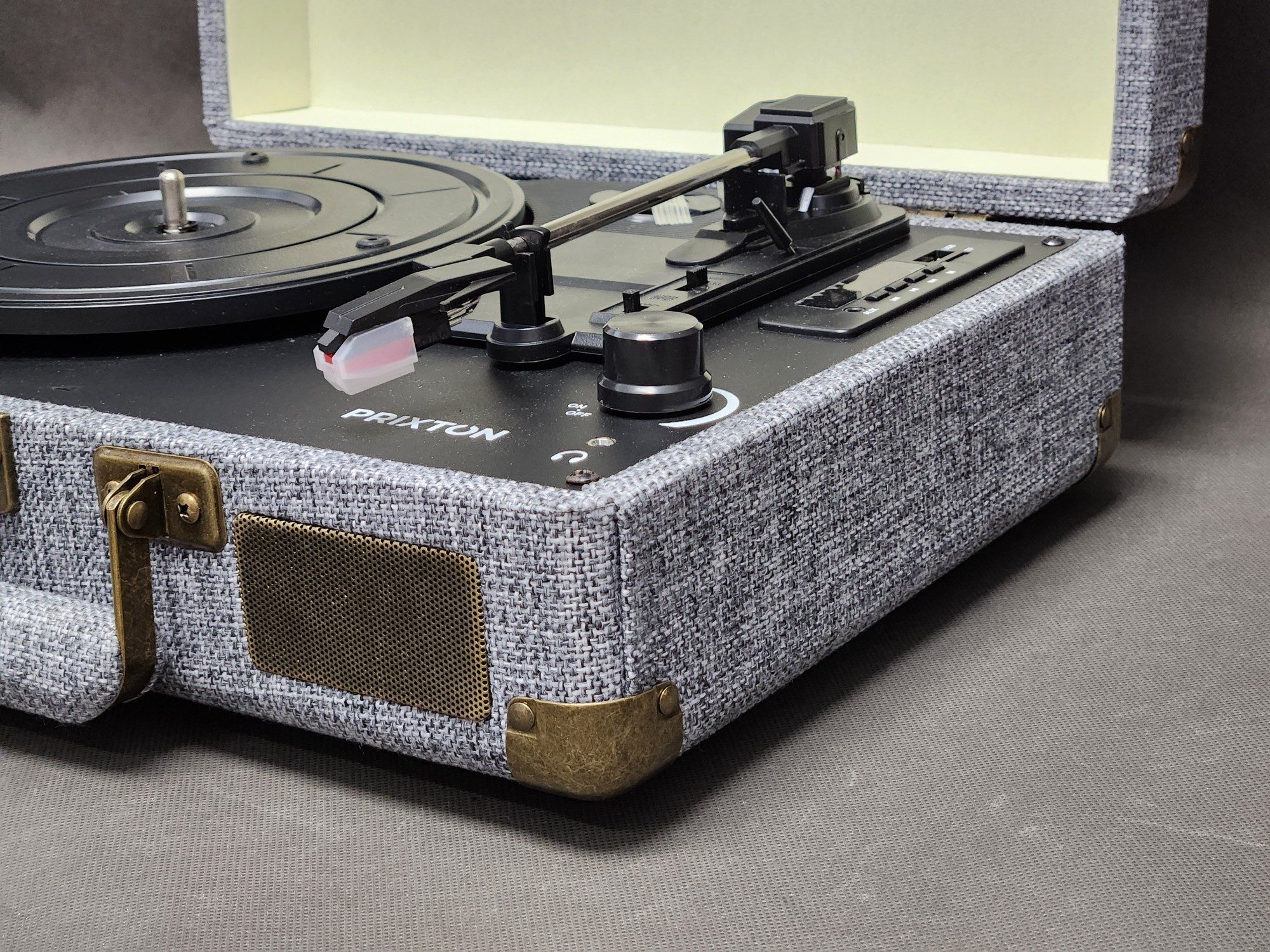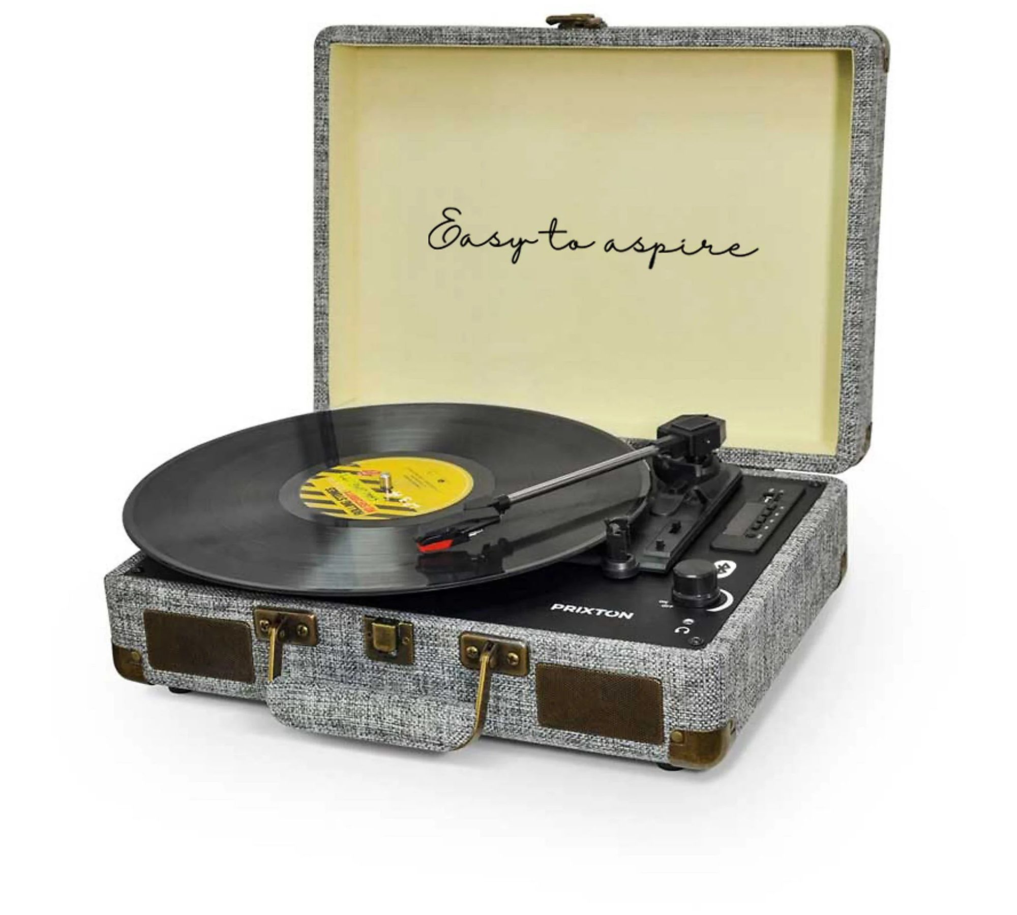Gramofon PRIXTON VC400 FABRIC – styl vintage, nowoczesne funkcje Ciesz się brzmieniem winyli w klasycznym stylu z nowoczesnymi możliwościami. PRIXTON VC400 to gramofon w estetyce retro, wyposażony w Bluetooth, radio FM, złącza USB i MicroSD, a także funkcję konwersji płyt winylowych do formatu WAV.