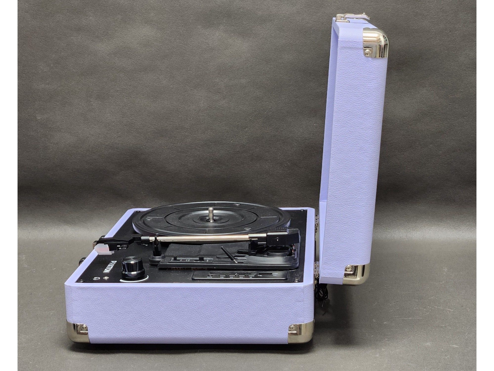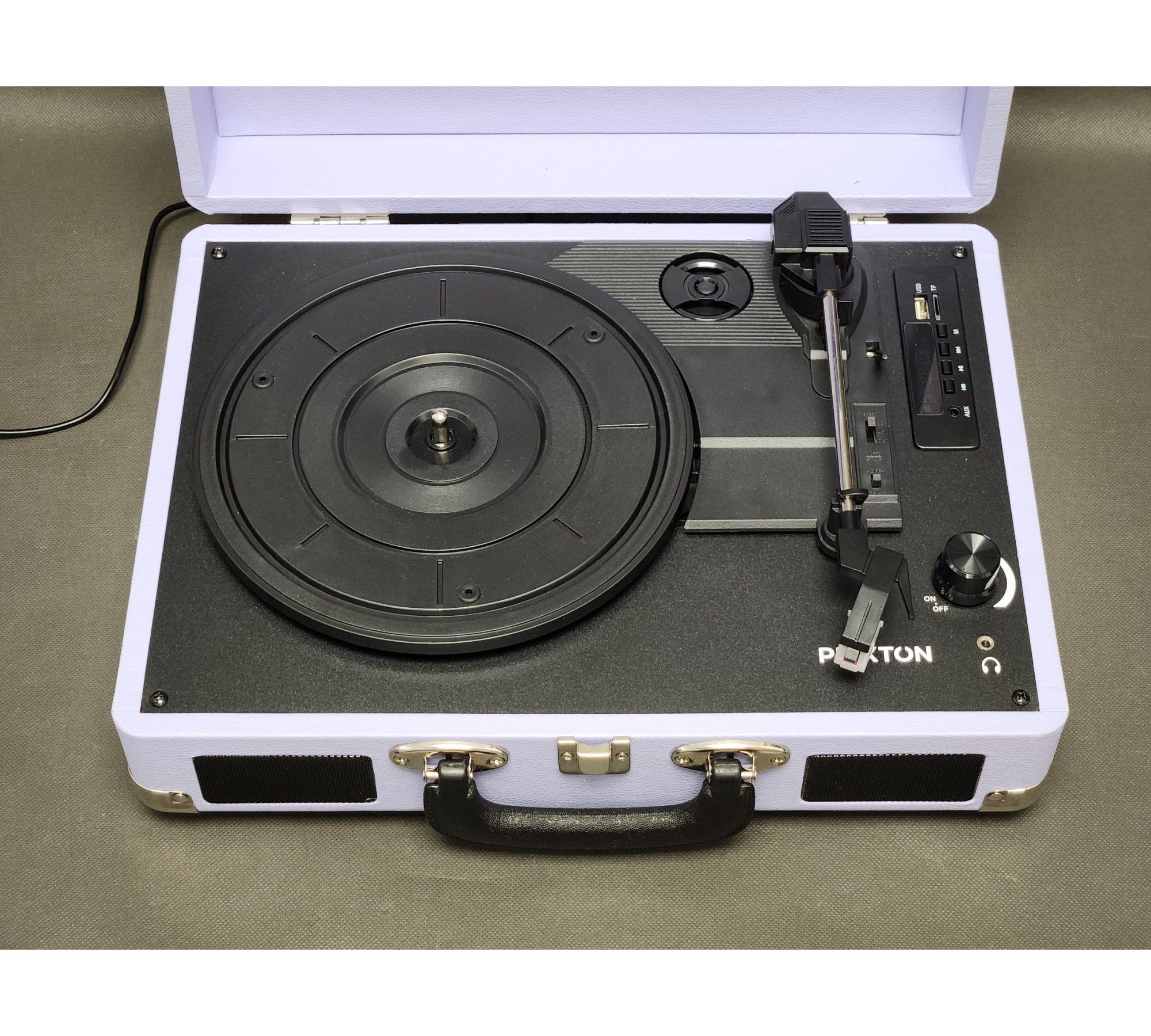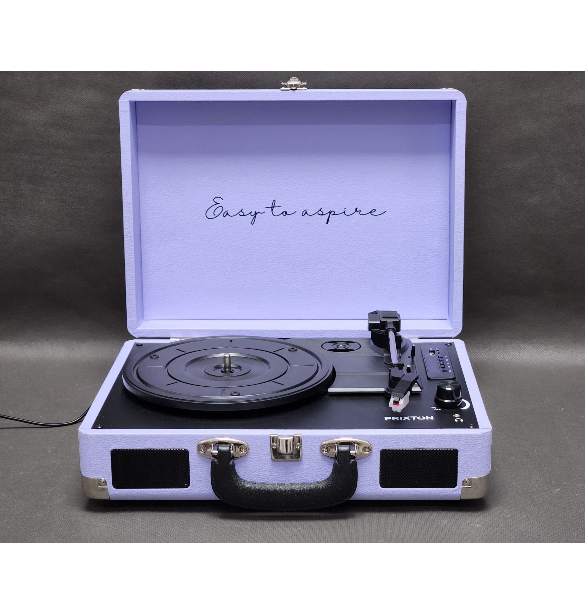 Gramofon PRIXTON VC400 LILAC – styl vintage, nowoczesne funkcje Ciesz się brzmieniem winyli w klasycznym stylu z nowoczesnymi możliwościami. PRIXTON VC400 to gramofon w estetyce retro, wyposażony w Bluetooth, radio FM, złącza USB i MicroSD, a także funkcję konwersji płyt winylowych do formatu WAV.