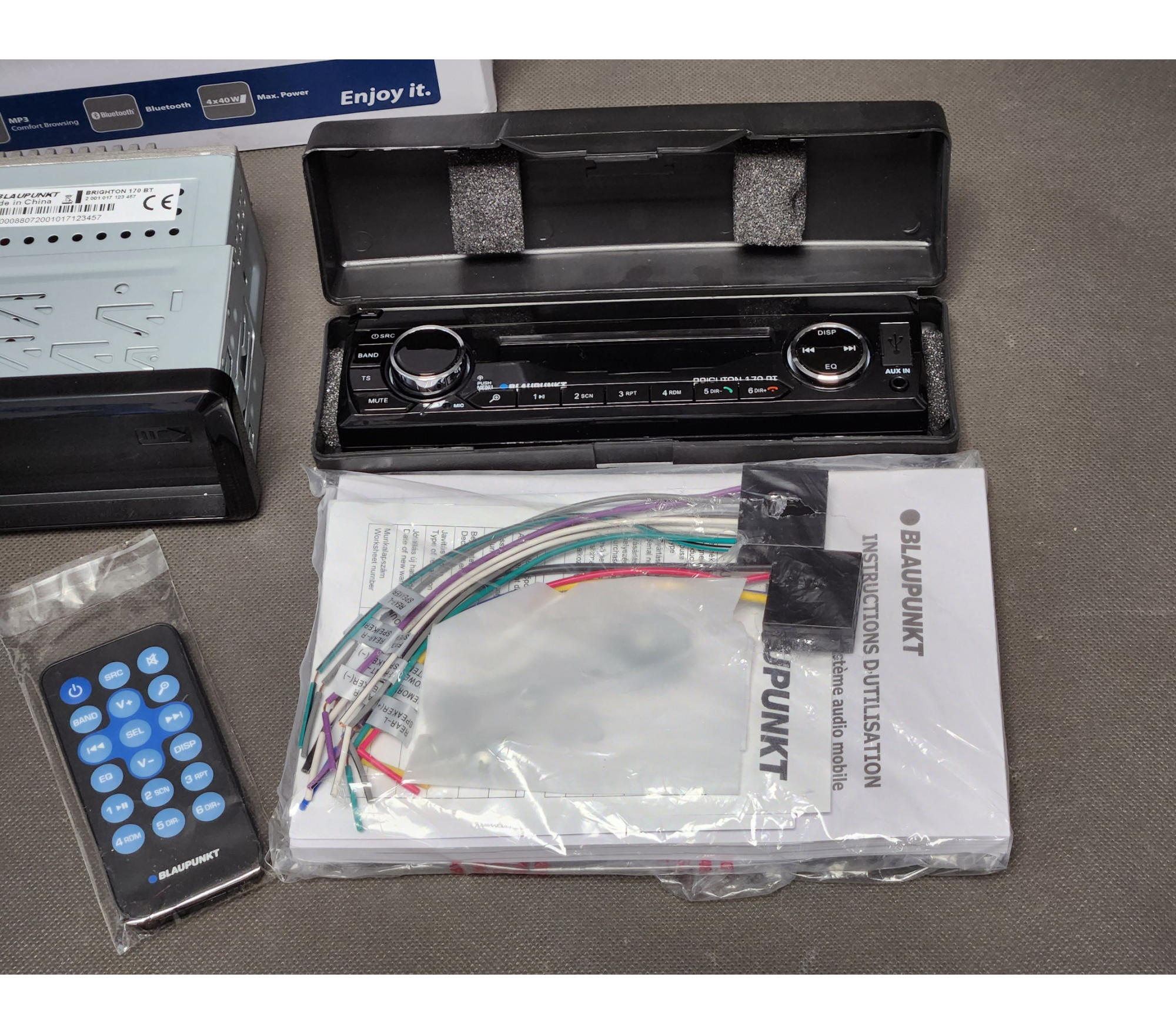 - Zdejmowany panel + etui w komplecie oraz pilot zdalnego sterowania.