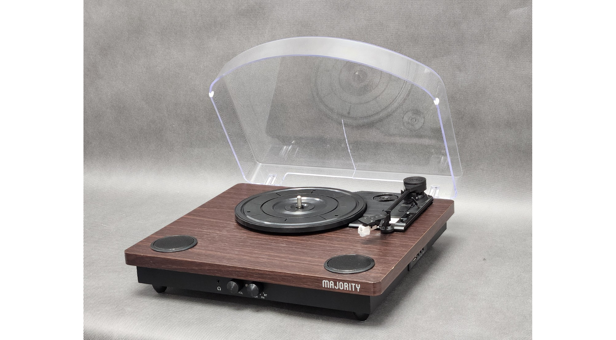Gramofon MAJORITY to doskonałe połączenie klasycznej estetyki z nowoczesnymi technologiami audio. Wyposażony w zaawansowany system Bluetooth 5.3, umożliwia wygodne przesyłanie muzyki bezprzewodowo oraz łączenie go z zewnętrznymi głośnikami, co czyni go idealnym rozwiązaniem dla miłośników muzyki, którzy pragną pełnej swobody w słuchaniu swoich ulubionych utworów. Innowacyjne wbudowane głośniki 2.0 zapewniają czysty dźwięk, idealny zarówno do odtwarzania klasycznych płyt winylowych, jak i nowoczesnych nagrań cyfrowych.