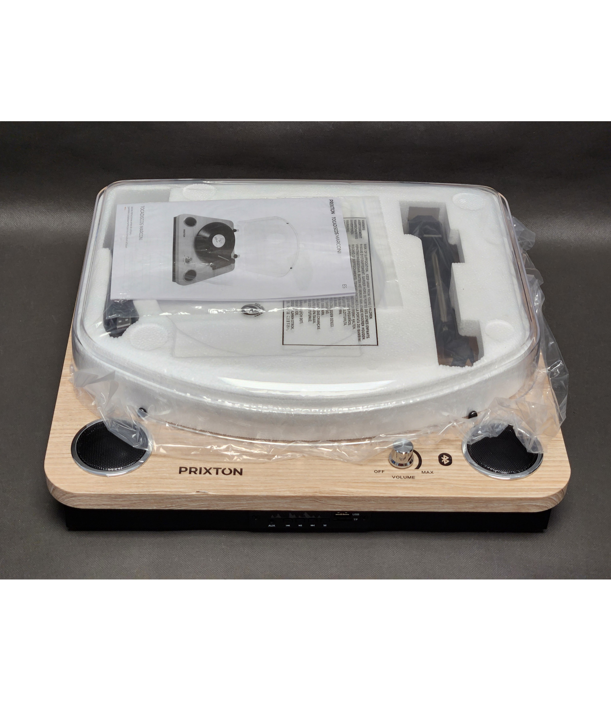 Gramofon PRIXTON Marconi, Bluetooth, USB, Radio, pokrywa - ryski