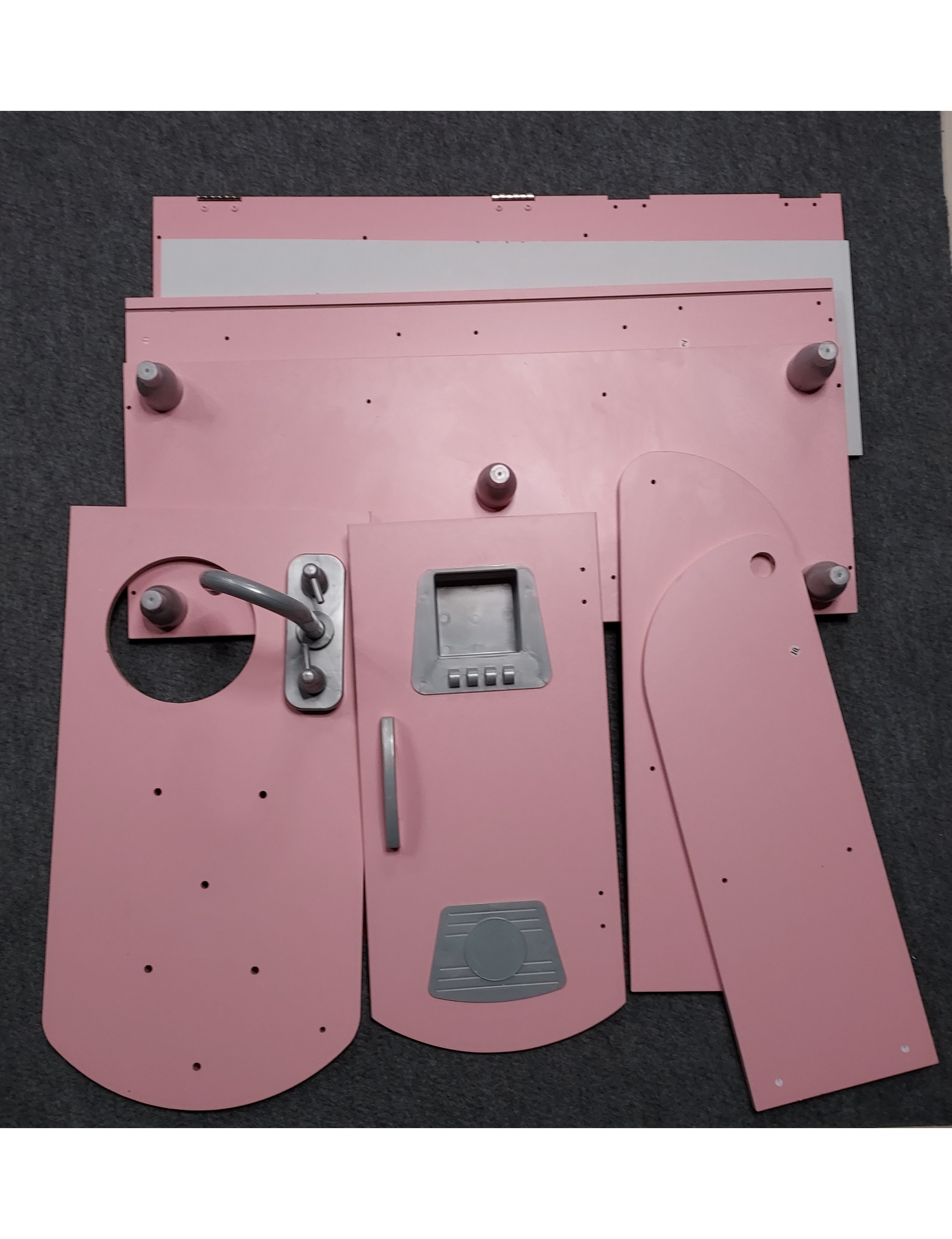 Stan przedmiotu: dobry+, widoczne ślady użytkowania (mankamenty widoczne na realnych zdjęciach - jeden element ułamany, delikatne pęknięcia, zarysowania, możliwy brak kilku śrubek), brak jednego elementu - zabawkowego telefonu; stan opakowania: zatępcze