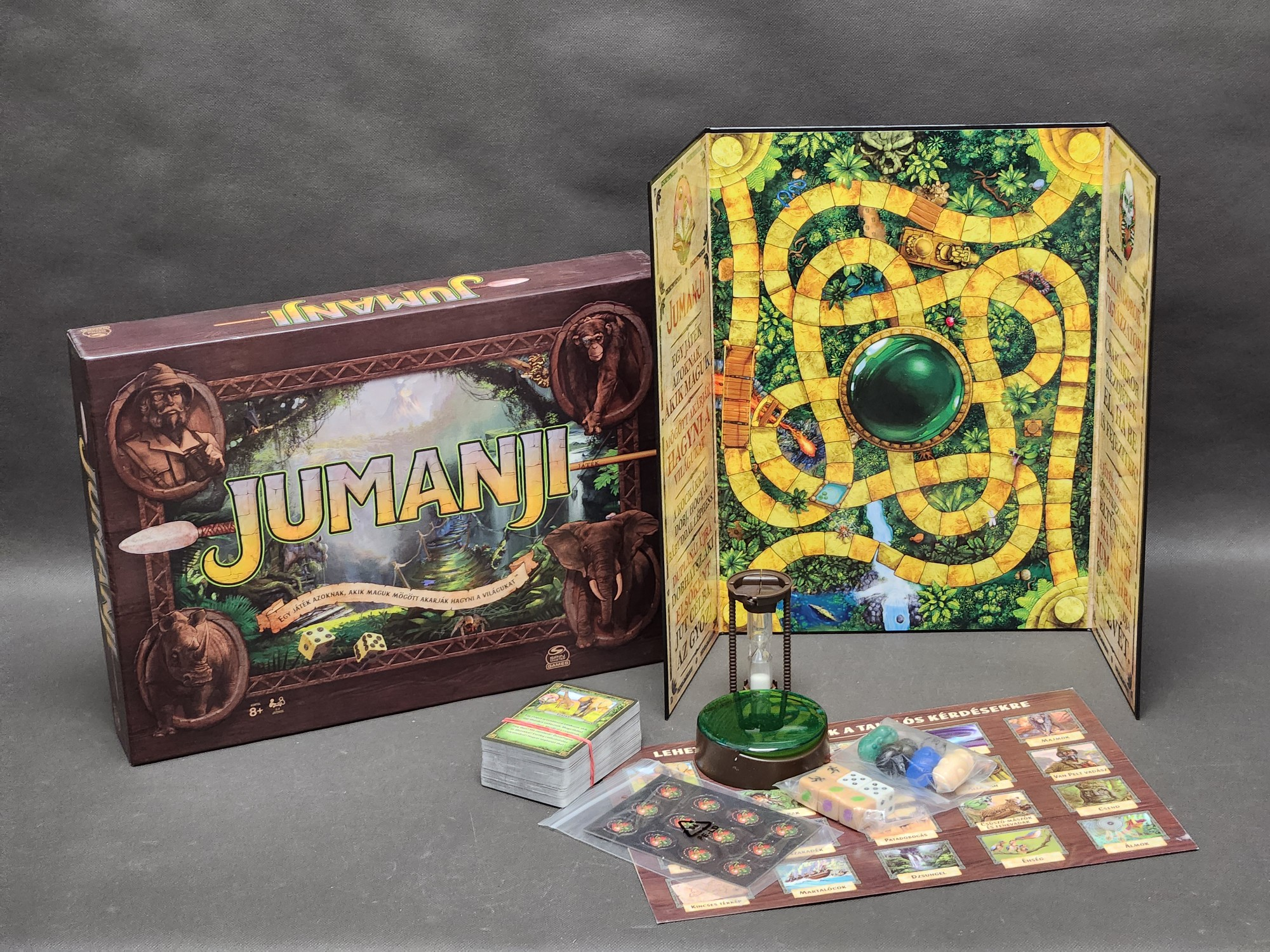 Przenieś się do dzikiego świata pełnego niebezpieczeństw i niesamowitych przygód. Jumanji to gra familijna, która wciąga od pierwszego rzutu kostką! Zmierz się z lwią pogonią, starciem z nosorożcem i polowaniem na krokodyle – tylko najodważniejsi dotrą do końca tej niezwykłej przygody.